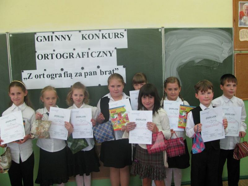 21 maja 2010r. o godz. 10:00 odbył się w naszej szkole Gminny Konkurs Ortograficzny dla klas drugich – „Z ortografią za pan brat”. Organizatorem konkursu była wychowawczyni klasy drugiej – mgr Marzena Romanowska. Do udziału w konkursie zostali zaproszeni uczniowie klas drugich ze Szkoły Podstawowej w Wielgiem i Szkoły Podstawowej w Czarnem. Każdą z wyżej wymienionych szkół reprezentowało 3 uczniów klasy II.