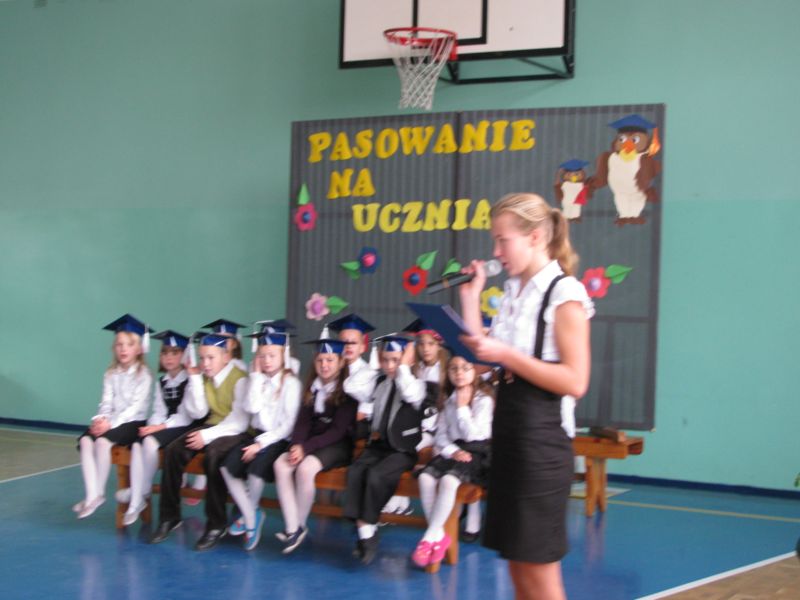 W dniu 26 października 2010 roku o godz. 10.00 odbyło się w nasze szkole uroczyste ślubowanie uczniów klasy I. Uroczyste pasowanie poprzedziła msza święta w kościele parafilanym. Uroczystość swą obecnością uświetnili: Dyrektor KDBS o/Wielgie p. Mirosława Strupczewska, ks. Ryszard Szajerski, przewodnicząca Rady Rodziców p. Patrycja Fornalczyk, Dyrektor Szkoły p. Zofia Kuczmarska, Grono Pedagogiczne, rodzice i dziadkowie pierwszoklasistów oraz koleżanki i koledzy z klas "0", II i III. Na zakończenie uroczystości pierwszoklasiści zaprezentowali się w części artystycznej przygotowanej pod kierunkiem wychowawcy p. Doroty Wilczyńskiej.