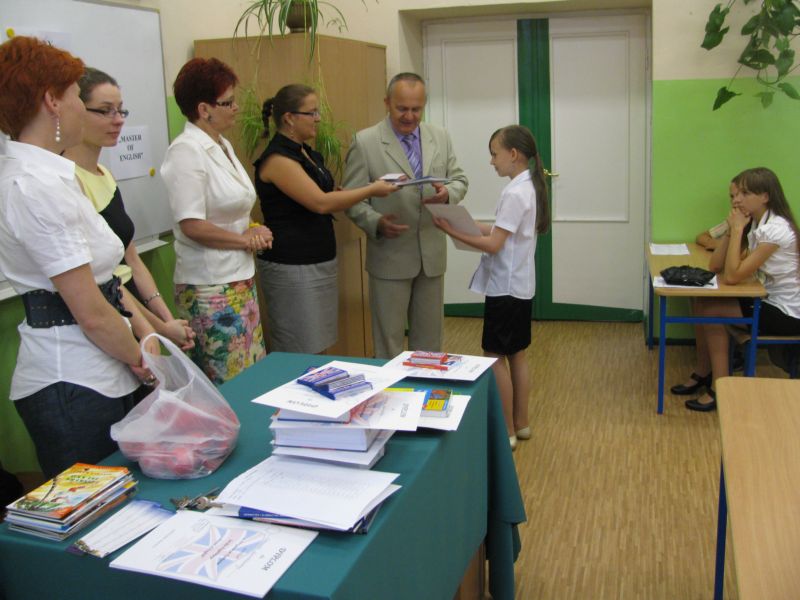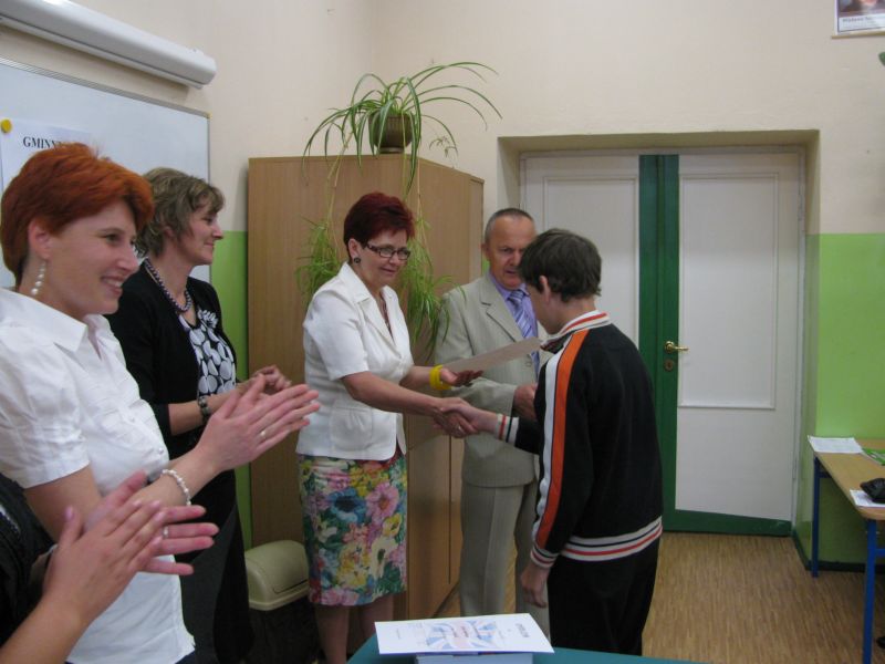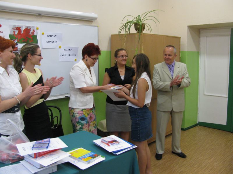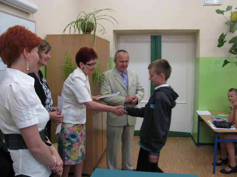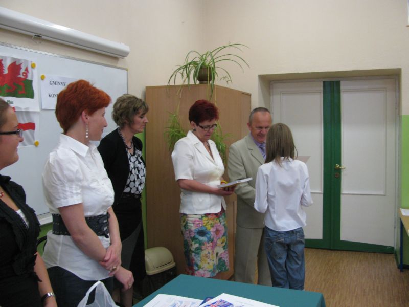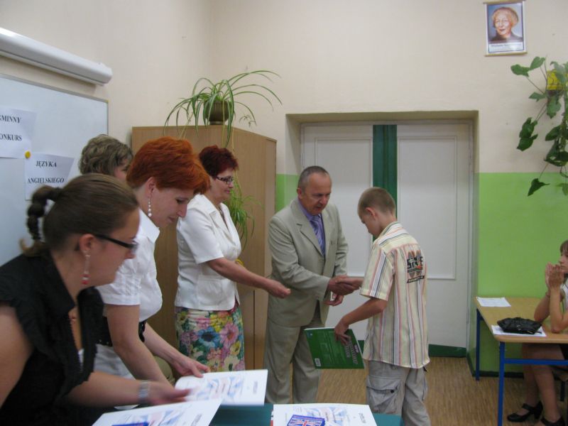 Nagrody wręczyli zaproszeni goście: pan Wójt Gminy Wielgie Tadeusz Wiewiórski , pani Przewodnicząca Rady Gminy Wielgie - Halina Sztypka oraz Dyrektor Szkoły Podstawowej w Zadusznikach pani Zofia Kuczmarska.
