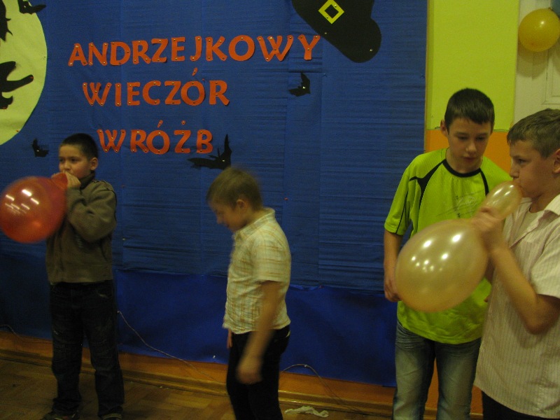 W dniu 24 listopada 2011 roku uczniowie naszej szkoły wraz z opiekunami:P. S. Cywińskim, P. Beatą Wyrzykowską, P. Mirosławą Zielińską i P. Jadwigą Dudzińską udali się na dyskotekę do Szkoły Podstawowej im. Jana Pawła II w Czarnem. Dyskoteka odbywała się pod hasłem: "Andrzekowy Wieczór Wróżb". Podczas zabawy odbyły się liczne konkursy z nagrodami. Dla uczniów rodzice przygotowali obficie zaopatrzony bufet. Jak bawili się uczniowie - zobaczcie na zamieszczonych fotografiach!