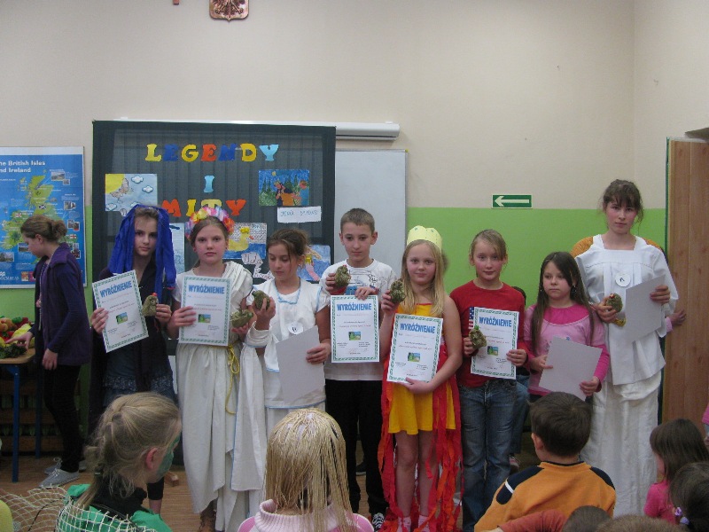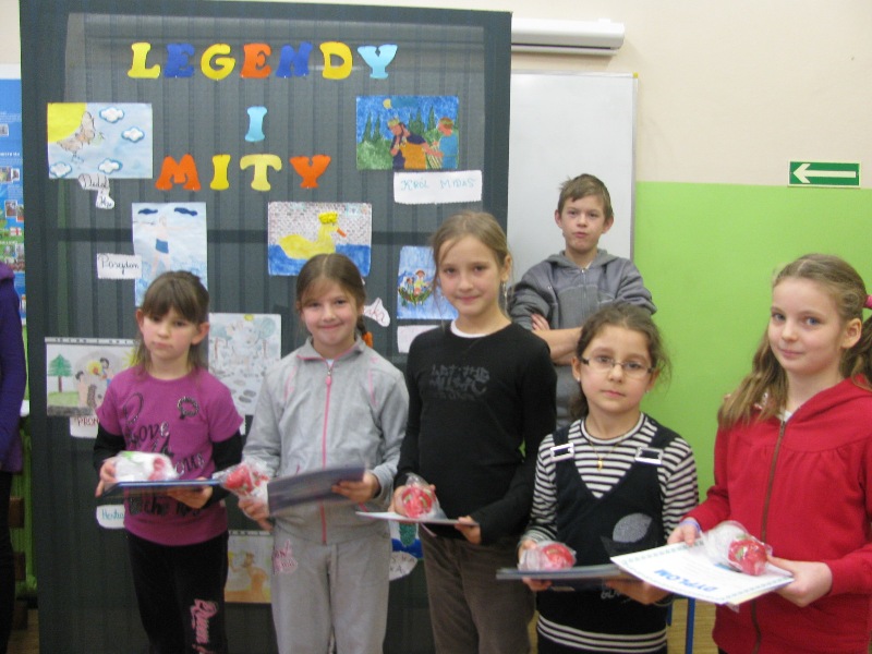 Podane zostały również wyniki szkolnego konkursu plastycznego „Ilustracja do wybranej legendy lub mitu”, zorganizowanego przez obydwie biblioteki. W konkursie uczestniczyli uczniowie klas I – VI.