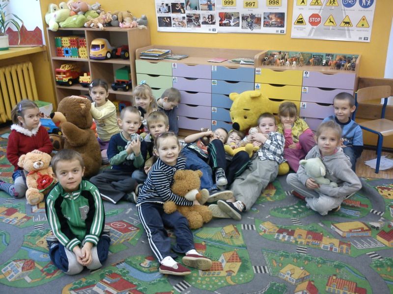 Z okazji Światowego Dnia Pluszowego Misia odbyło się spotkanie dla uczniów klasy "0". Dzieci przedstawiały przyniesione przez siebie ulubione misie, rozpoznawały postaci misiów z bajek filmowych oraz z książek, śpiewały misiowe piosenki oraz uczyły się wierszyków o misiach. Opowiadały też o życiu prawdziwych niedźwiedzi. Na zakończenie spotkania dzieci otrzymały "małe co nieco" w postaci lizaków.