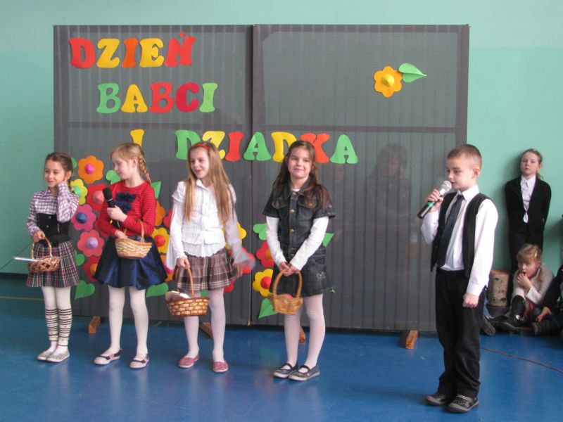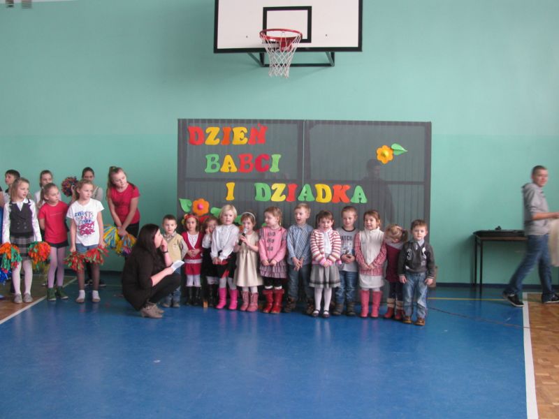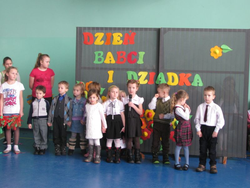 W dniu 29 stycznia 2013 roku odbyła się w sali OSP uroczystość z okazji Dnia Babci i Dziadka. Uczniowie z najmłodszych klas: przedszkole unijne, klasy 0 oraz klasy I-III zaprezentowały przybyłym dziadkom przygotowane pod kierunkiem wychowawców montaże słowno-muzyczne. Podczas uroczystości wystąpił również zespół muzyczny oraz zespół taneczny. Koordynator uroczystości składa podziękowania wszystkim, którzy przyczynili się do organizacji uroczystości: nauczycielom wychowawcom w osobach: P.Katarzynie Leśniewskiej, P.Mariannie Człapińskiej, P. Karolinie Wiśniewskiej, P. Jadwidze Dudzińskiej, P. Dorocie Augustyniak, P. Dorocie Wilczyńskiej za przygotowanie uczniów oraz P. Jarosławowi Jeżewskiemu za przygotowanie zespołu muzycznego, P.Sławomirowi Cywińskiemu za obsługę techniczną sprzętu nagłaśniającego. Podziękowania kierujemy rownież do P. Doroty Augustyniak i P. Doroty Wilczyńskiej za przygotowanie scenografii. Szczególne podziękowania należą się wszystkim rodzicom piekącym ciasta oraz Radzie Oddziałowej z klasy I, która zajęła się organizacją poczęstunku.