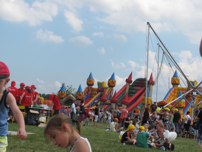 W dniu 08 czerwca 2013r członkowie Szkolnego Koła Caritas uczestniczyli w Festynie Rodzinnym z okazji Dnia Dziecka „Bądźmy razem” w Toruniu. Impreza miała miejsce na terenie Aeroklubu Pomorskiego. Uczestnicy otrzymali koszulki i czapki Caritasu Toruńskiego. Na początku dzieci ułożyły ogromne SERCE DLA MAM. Następnie wszyscy udali się do wesołego miasteczka, gdzie czekało na nich mnóstwo atrakcji, począwszy od zjeżdżalni, karuzel, przelotów samolotem, konkursów, spotkań ze strażakami, policjantami, tańcami po prostu nie sposób wszystkiego wymienić. Organizatorzy zadbali o ciepły posiłek dla każdego dziecka, zimną wodę dla ochłody, watę cukrową dla osłody oraz paczkę ze słodyczami i ... . Dziękujemy organizatorowi wyjazdu p. M. Zielińskiej oraz opiekunom p. D. Augustyniak, p. K. Leśniewskiej oraz p. M. Koryckiej.