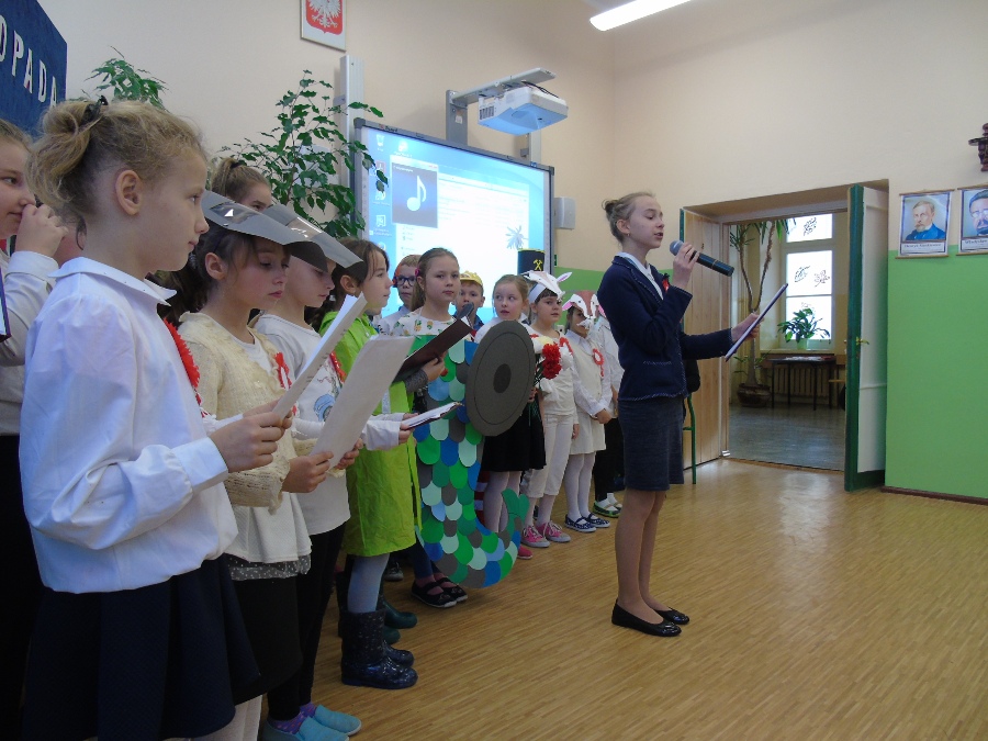 W dniu 10 listopada 2016 roku odbyła się w naszej szkole Akademia z okazji 98 rocznicy Odzyskania przez Polskę Niepodległości. Uczniowie klas trzecich wraz z chórem szkolnym zaprezentowali montaż słowno - muzyczny pt. "Mojej Ojczyźnie" przygotowany pod kierunkiem opiekunów: p. Doroty Augustyniak, p. Jadwigi Dudzińskiej i p. Jarosława Jeżewskiego.