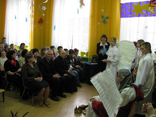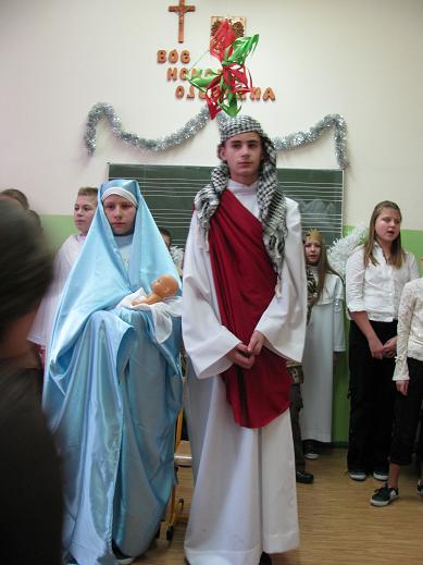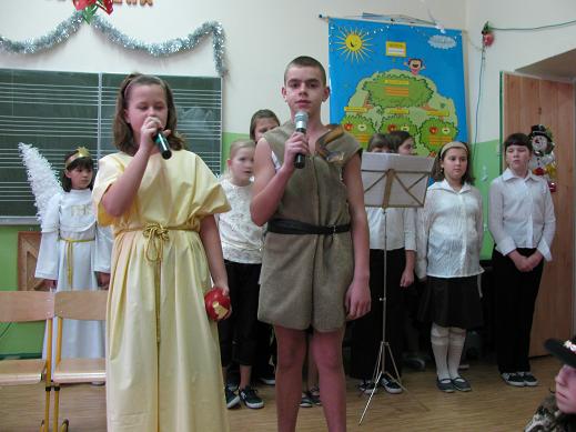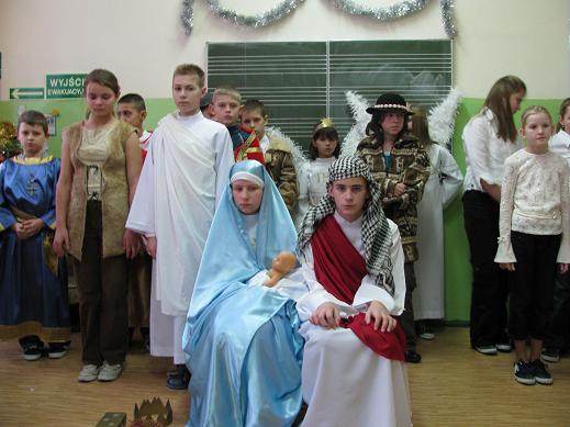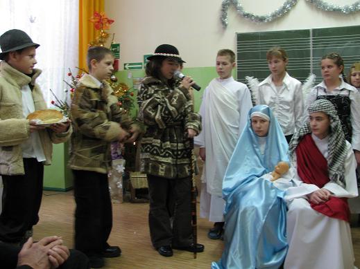 19.12.2008 r. w naszej szkole odbyło się spotkanie wigilijne. Na to spotkanie przybyli goście: zaproszeni emeryci, przedstawiciele Rady Szkoły i Rady Rodziców oraz Ksiądz Proboszcz. Spotkanie wigilijne zakończyło się przedstawieniem jasełkowym przygotowanym przez dzieci i młodzież z naszej szkoły pod kierunkiem p. M. Zielińskiej i p. Z. Chełminiaka. Jest tylko jeden taki dzień kiedy pierwsza gwiazda Wigilijną noc zaczyna a anioły pod choinkę układają nam marzenia. Radości, miłości i pomyślności w Nowym Roku wszystkim życzymy.